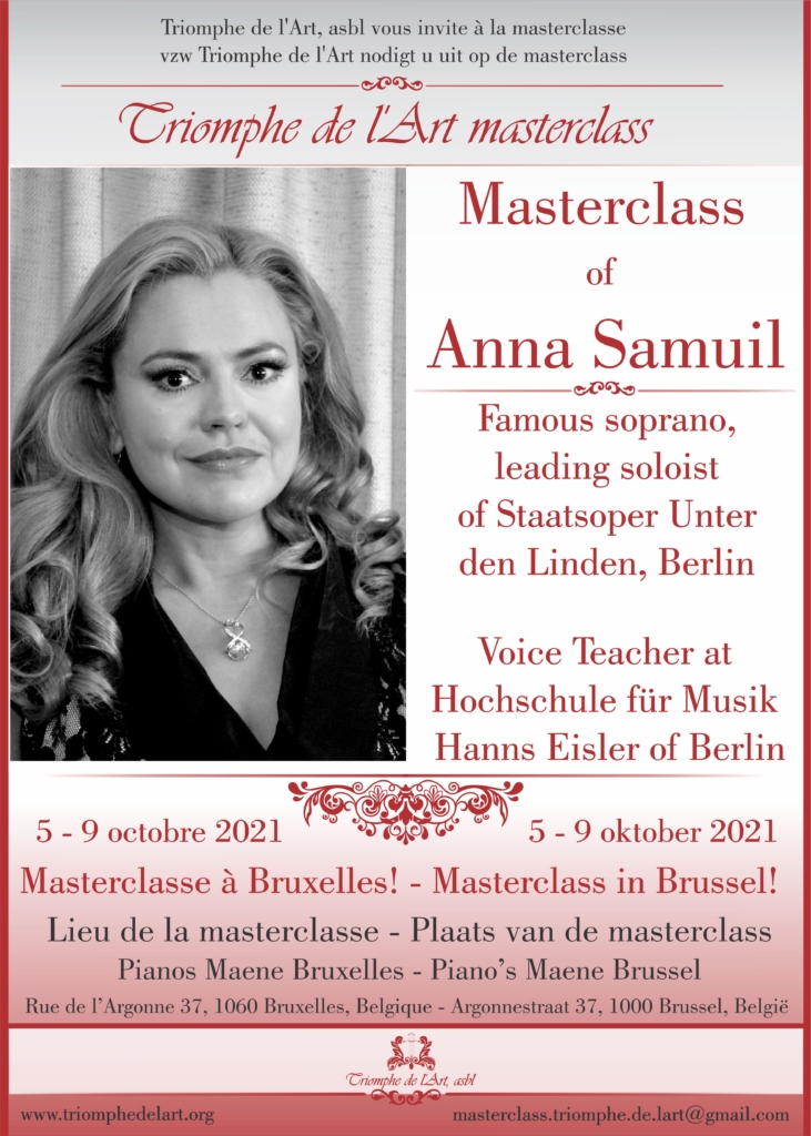 Active students will work with the master teacher and a pianist Noémi Biro. This masterclass is private. The masterclass includes 3 lessons of 45 minutes with Anna Samuil and a pianist. This masterclass is private. The number of places is limited!